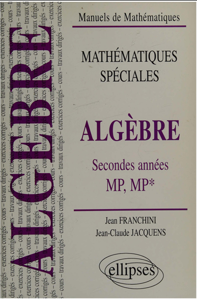 Jean Franchini et Jean Claude Jacquens Ce livre est le dernier des trois tomes d’un Manuel de Mathématiques écrit à l’intention des étudiants des classes préparatoires de seconde année MP et MP*. Il est conforme au programme en vigueur depuis septembre 1996. Il s’efforce de respecter tant l’esprit que la lettre du programme qui a